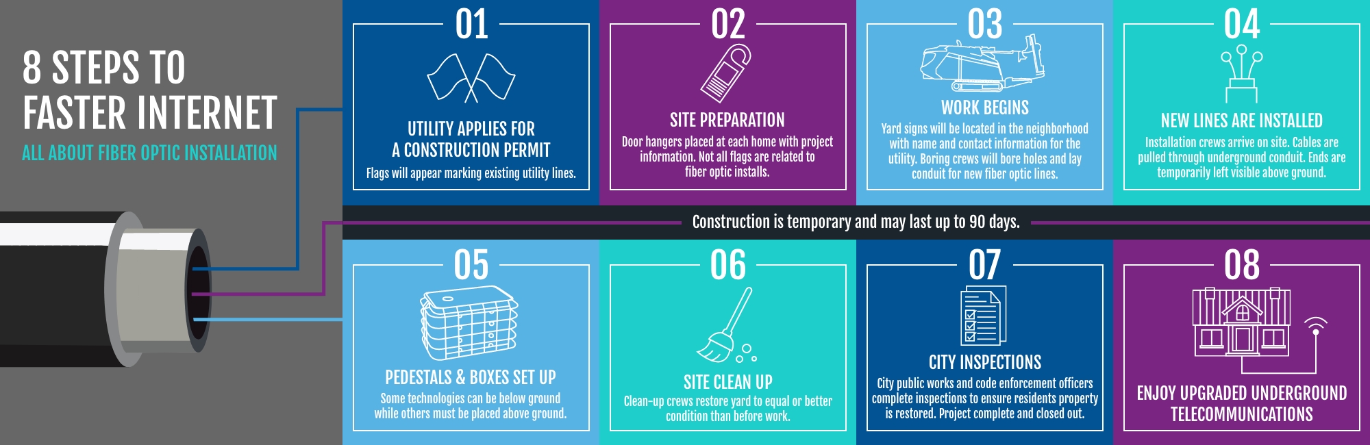We understand construction can be inconvenient and we are committed to minimizing disruptions during this process. While construction in your neighborhood can take up to three months, our goal is to complete the installation efficiently and with minimal impact on your daily routine.