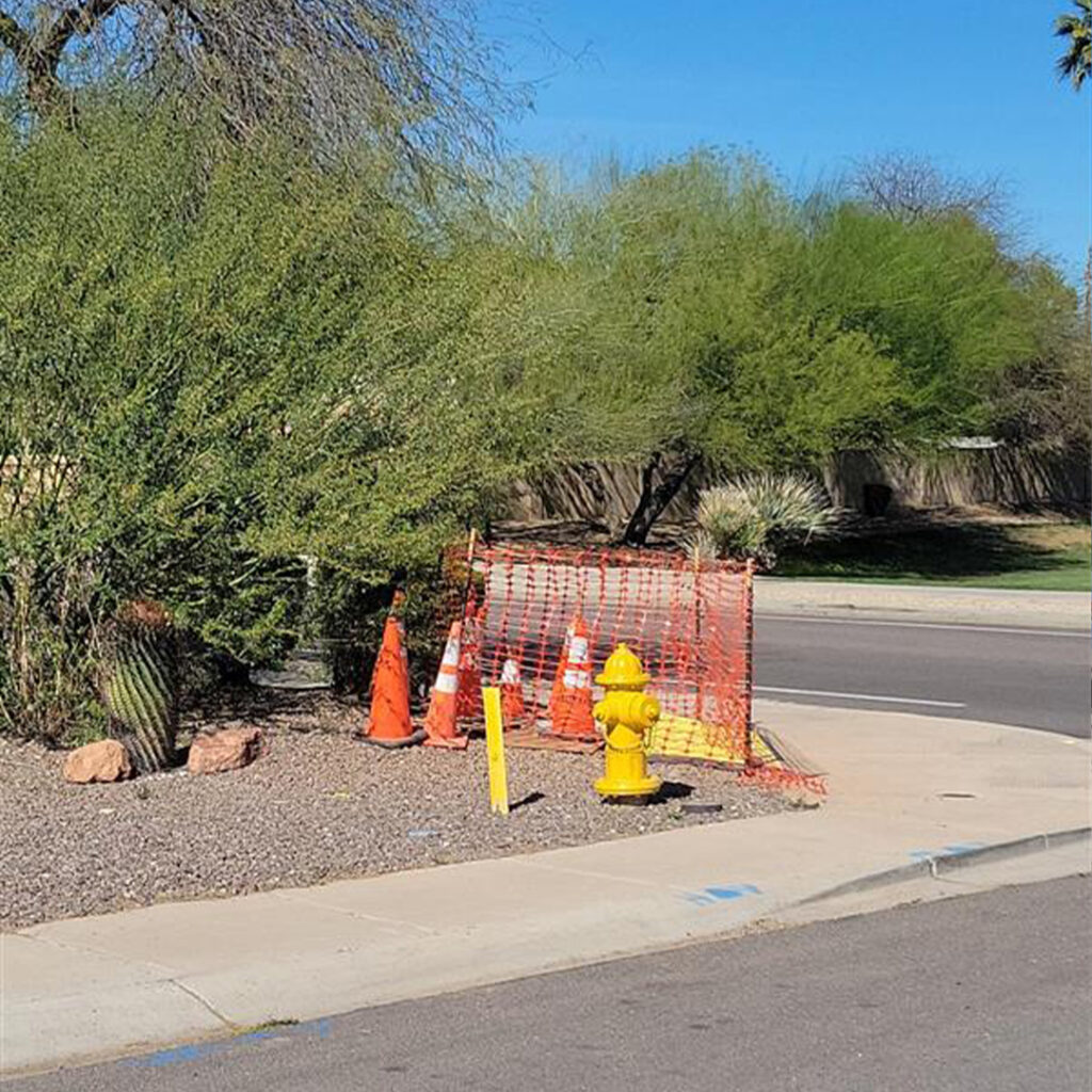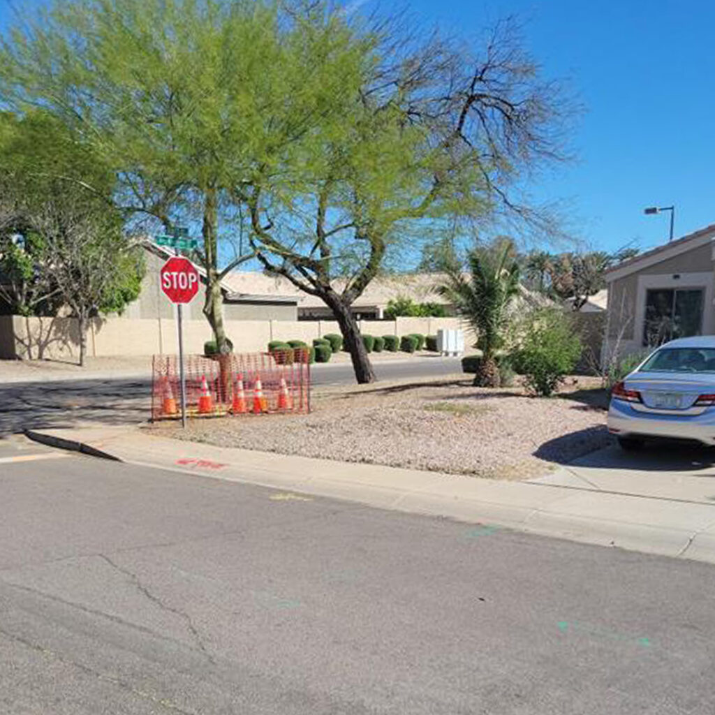 If you encounter a hole on or near your property, this is normal. This is part of the installation process. These holes provide our installers access to see other underground utilities so our installation team can avoid service disruption. These holes will be covered at the end of each day and repaired in the restoration phase.