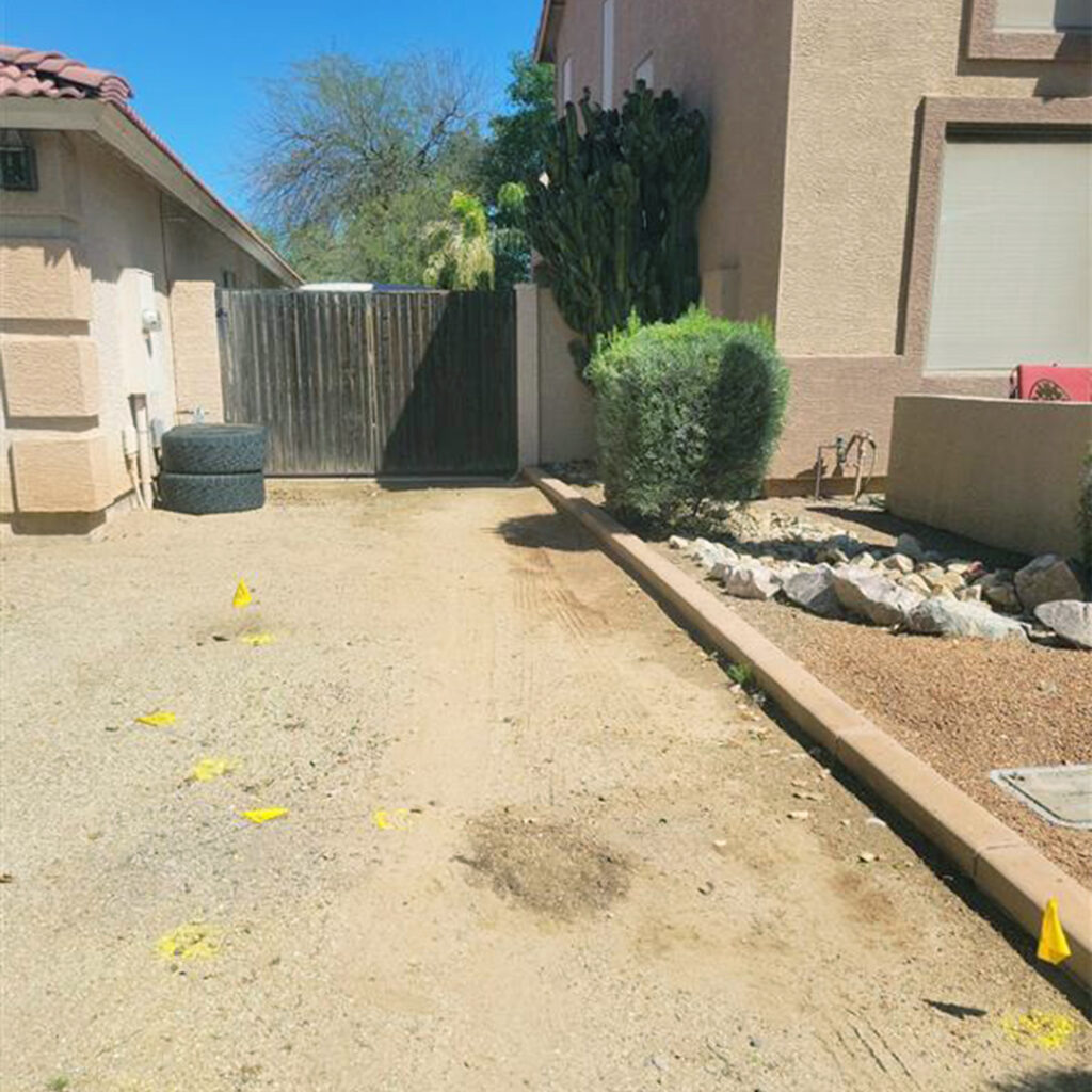 Paint placed on the ground is required under Arizona state law and is part of the installation process. This is to ensure the safety of the public and our installers during the installation process. These marks are to identify other utilities in the right of way and serve the purpose minimizing any impact of service disruptions during the installation process. The paint is a non-toxic water-based paint which will fade over time placed by gas, electric, sewer, water, and other utility providers.
