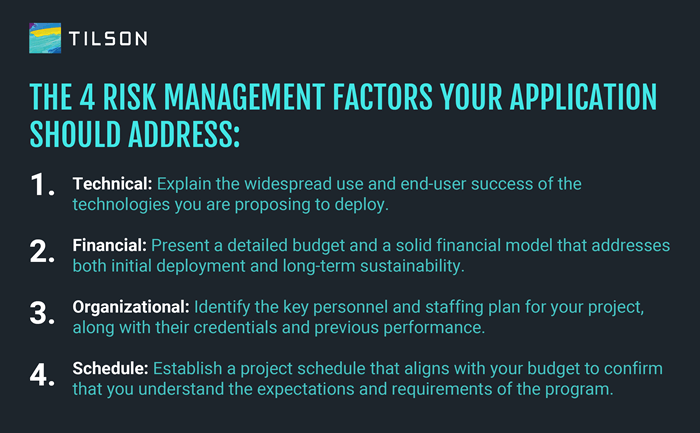 When developing a project, you can strengthen your application by considering these factors and proactively addressing them in your application through a risk matrix or other artifact.