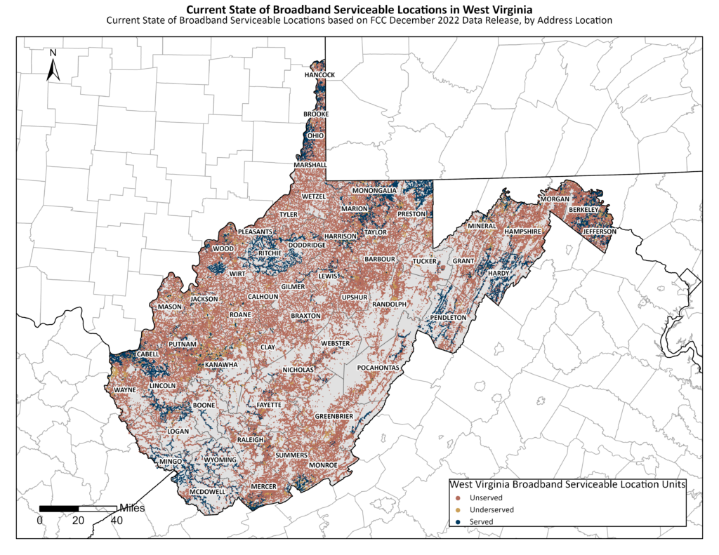 West Virginia has long been aware of the economic, safety, and quality of life benefits that high-speed internet brings, while also acknowledging that their mountainous geography makes deploying broadband especially challenging. Currently, 35% of West Virginians live in an area that is either completely unserved or underserved by internet access.
